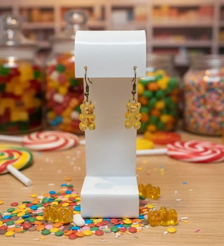 Imitant à la perfection les célèbres bonbons oursons, ces bijoux apportent une touche de couleur et de gaieté à votre style.