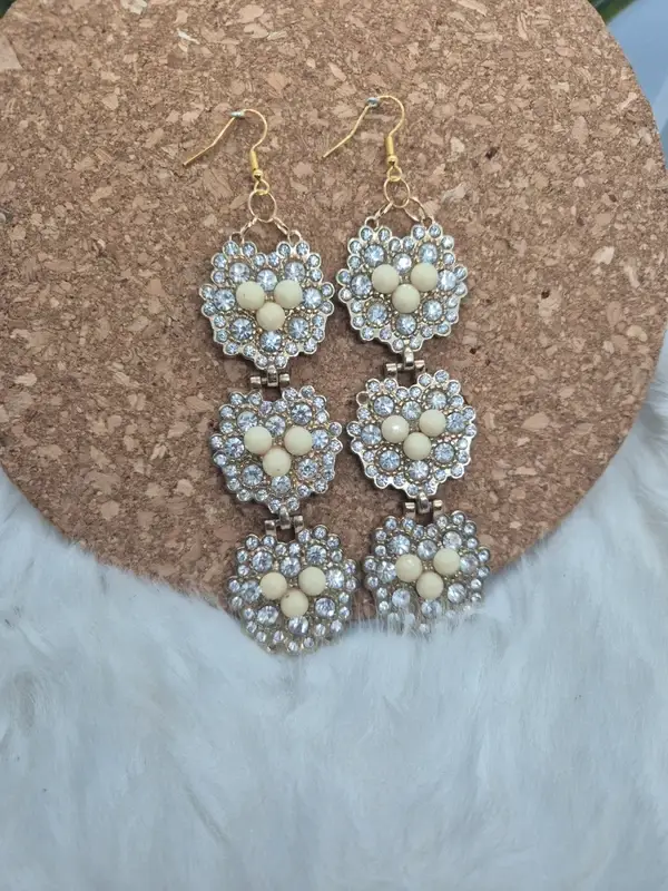 ✨ Magnifiques boucles d'oreilles pendantes composées de trois fleurs articulées.