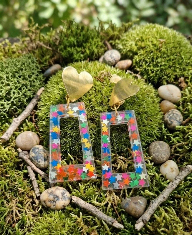 Craquez pour ces boucles d'oreilles festives, nées de mes premières expériences avec la résine.